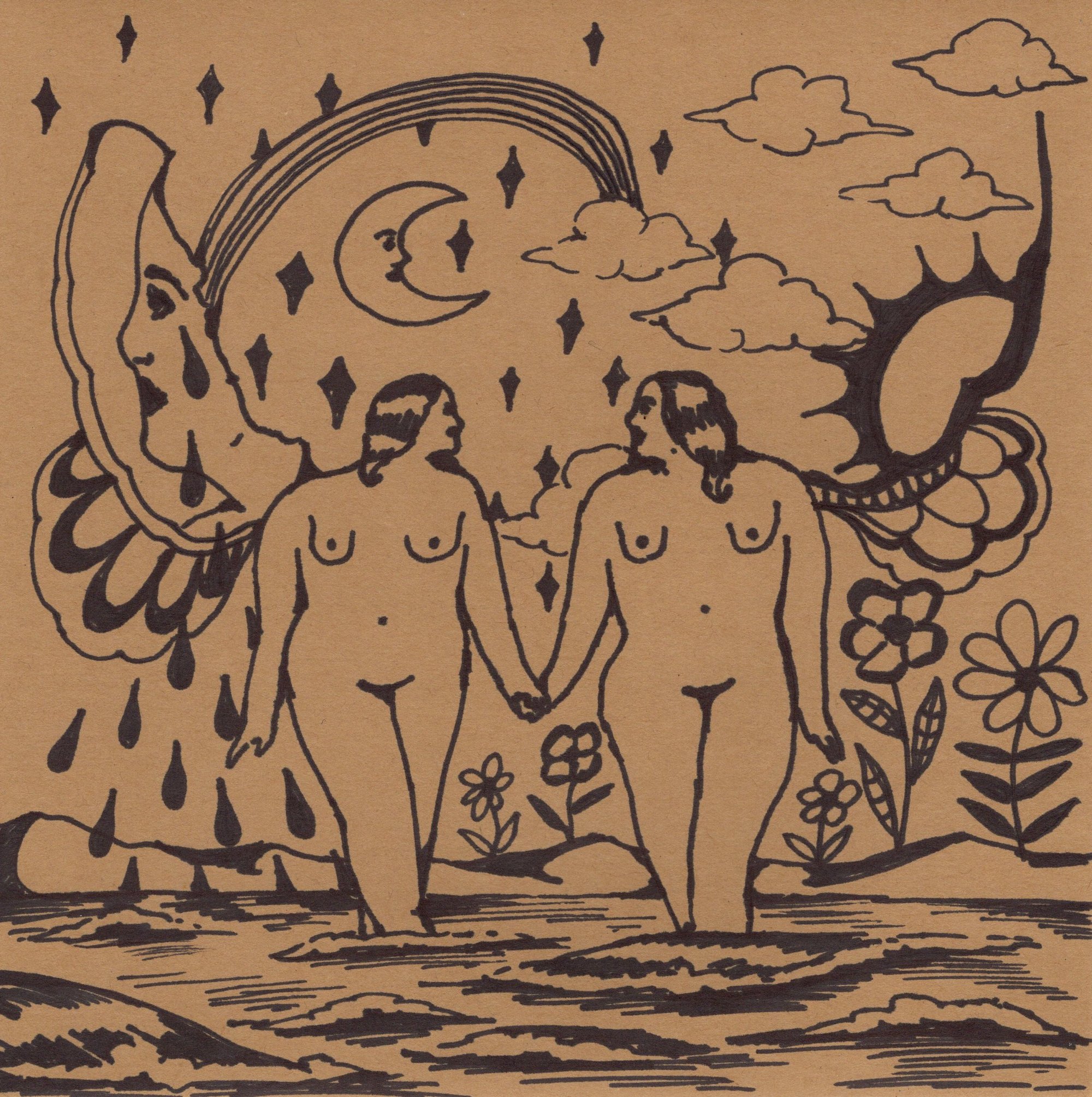 Original marker drawing on brown cardstock paper