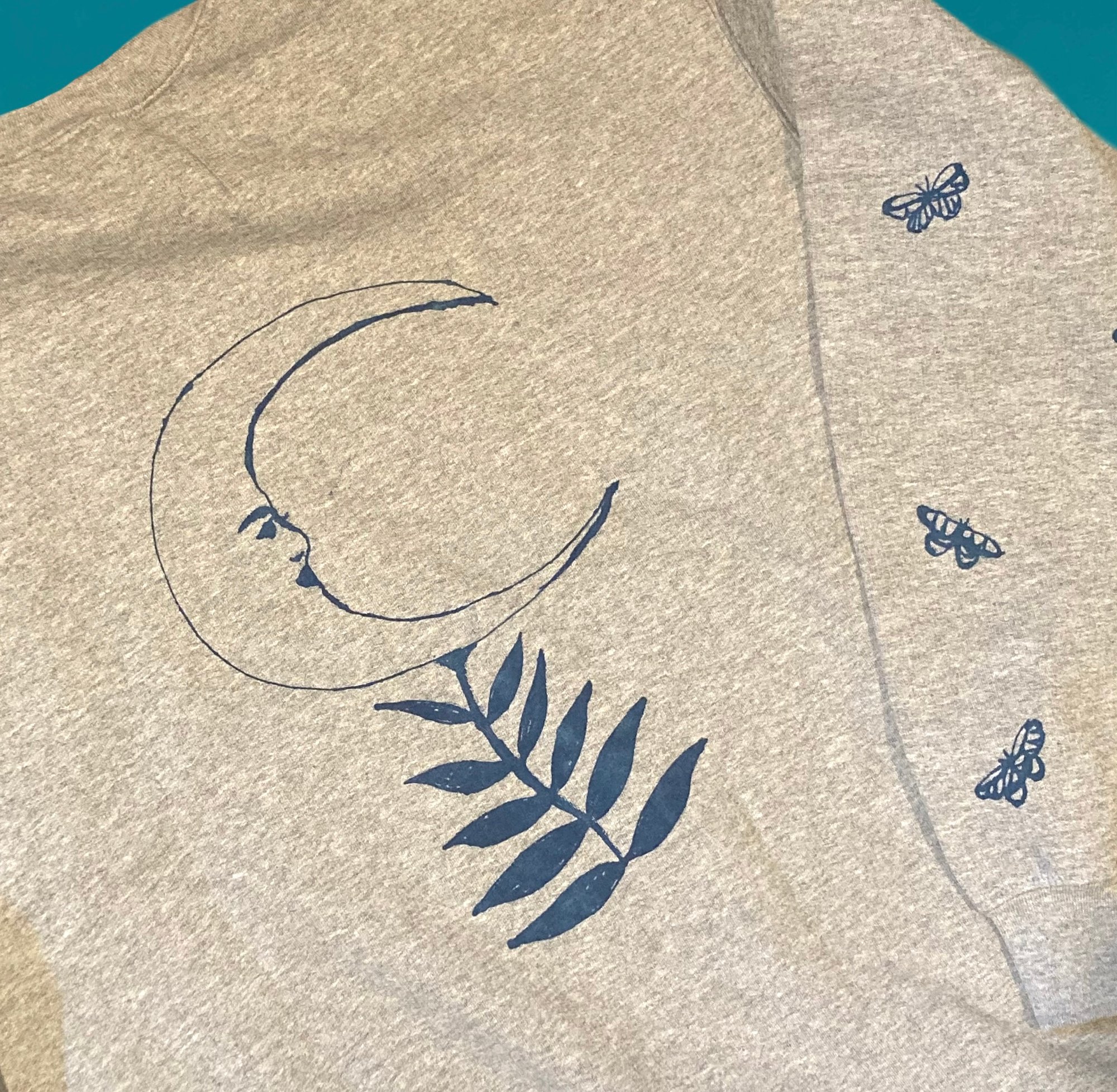 Hand drawn on with fabric paint