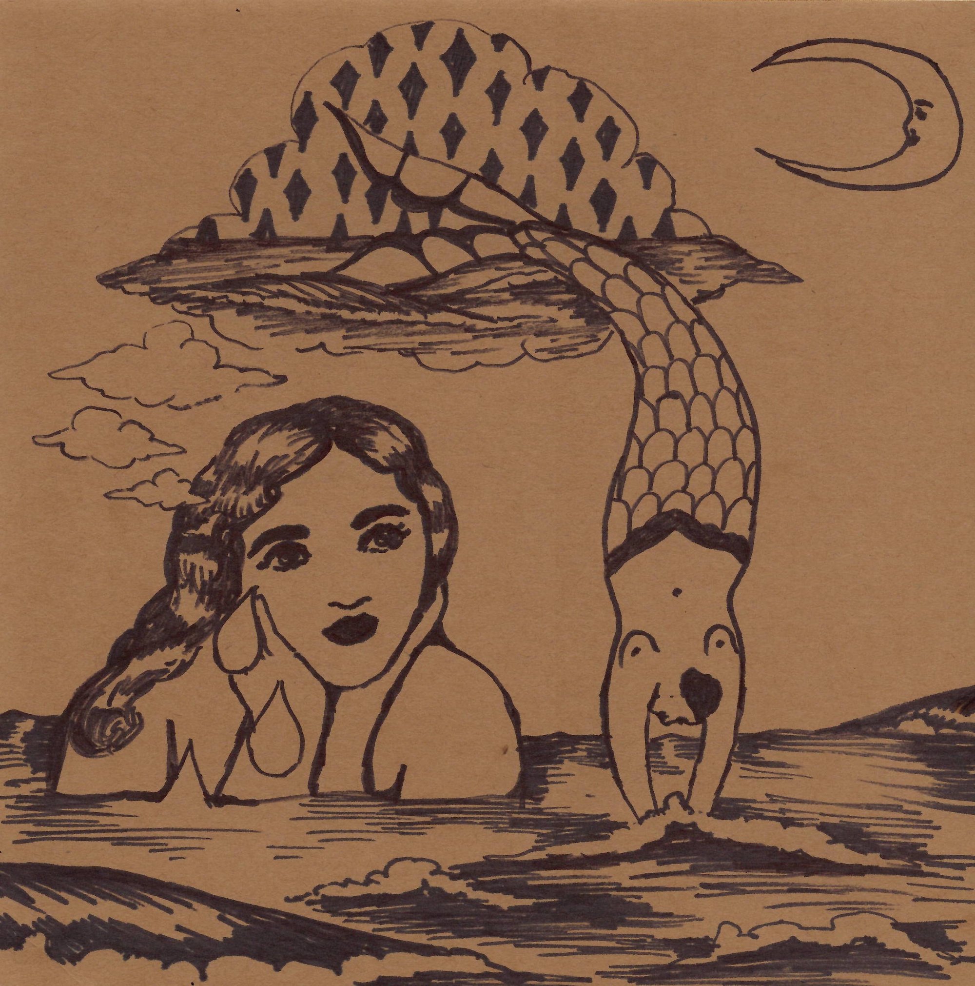 8x8 inch marker drawing on brown cardstock paper